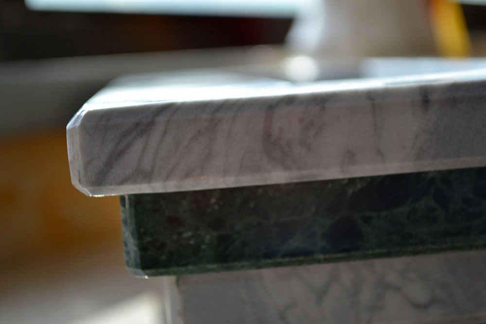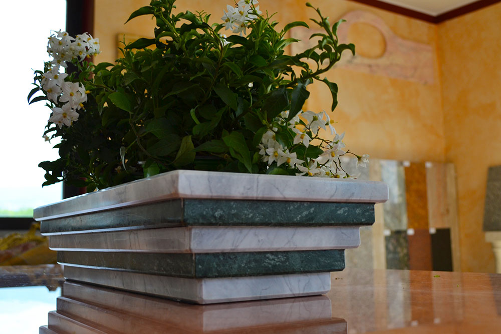 Reallizzazione di un centro tavola in marmo "verde guatemala" e "carrara"